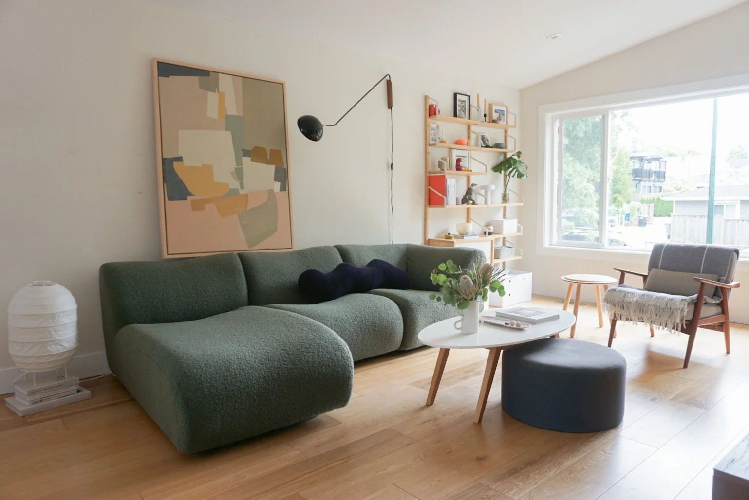 Choosing a sofa is such a big decision! My friends Veronica and Henry ( who you hopefully remember from this small home tour HERE) were ready for a new one and asked for my help. Their 15 year old sofa had seen better days and their kids are a bit more grown so it seemed like the perfect time to update. I had done a previous consult with them for some lighting and art ideas, so they asked me to help with sofa selections (I was honoured to help).