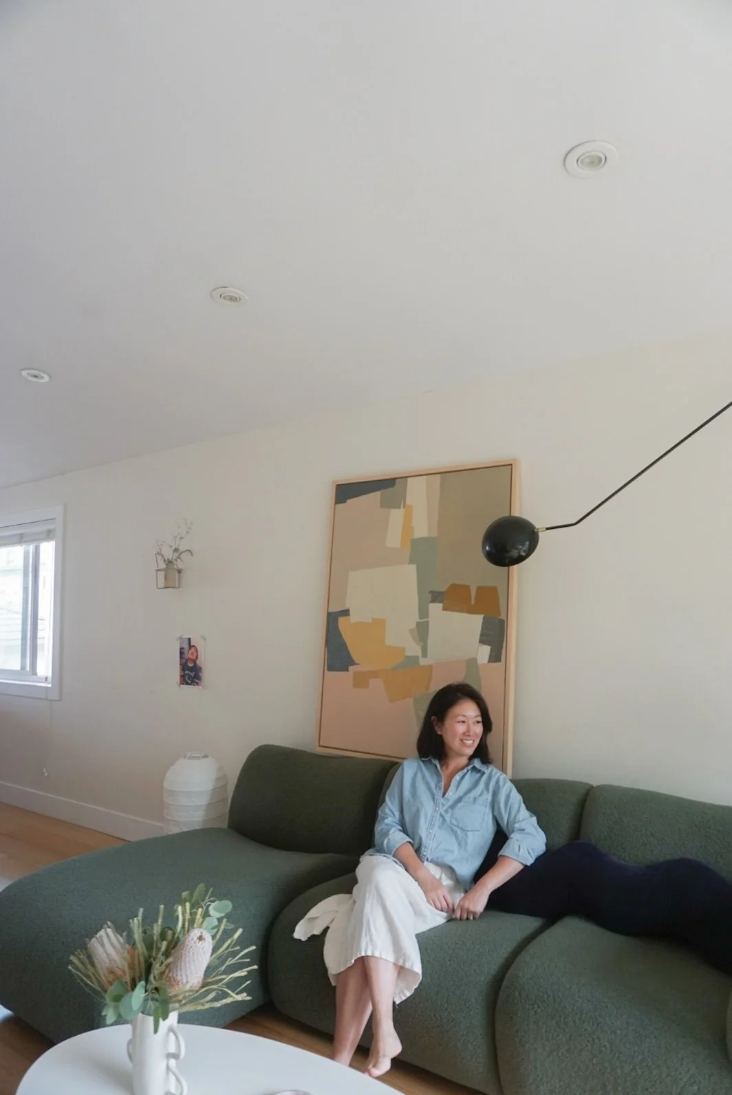 Another deciding factor for this sofa is that the fabric covers are removable, fully washable and replaceable. This is so rare and so helpful for families (and I’m sure pets). I think the deep green (Leura Mangrove) really suits their space. We also considered the Leura Wattle (a lighter green) and Leura Ocean (a deep blue green).